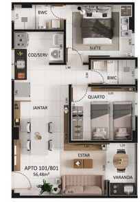 • Apartamentos de 1, 2 e 3 quartos, todos com suíte
