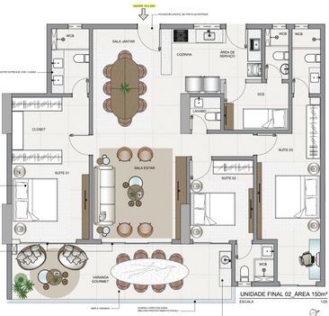 3 suítes | lavabo | varanda gourmet | WC de serviço | 2 vagas
