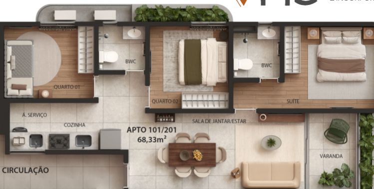 68,33 m² área útil