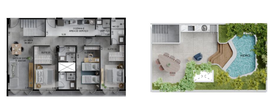 Unidade Cobertura com área privativa com Hidro.