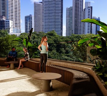 ☕ Café & Restaurante integrados ao térreo com lojas